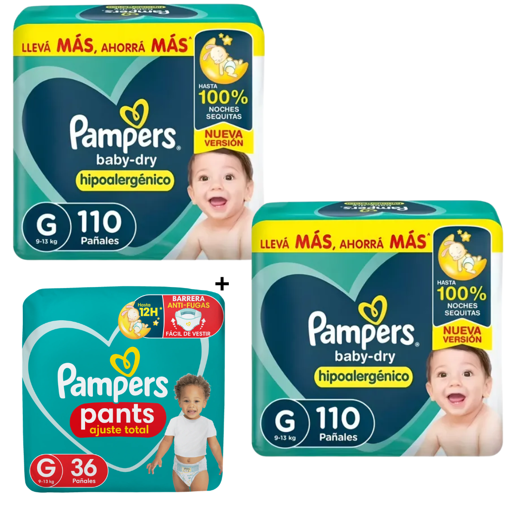 2 Pampers Baby Dry G x110 + 1 Confort Pants G x36 GRATIS